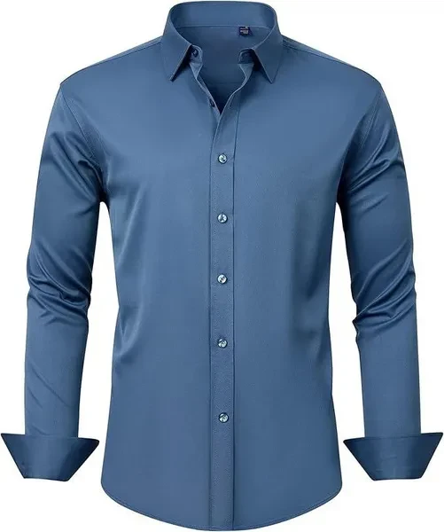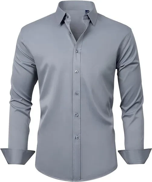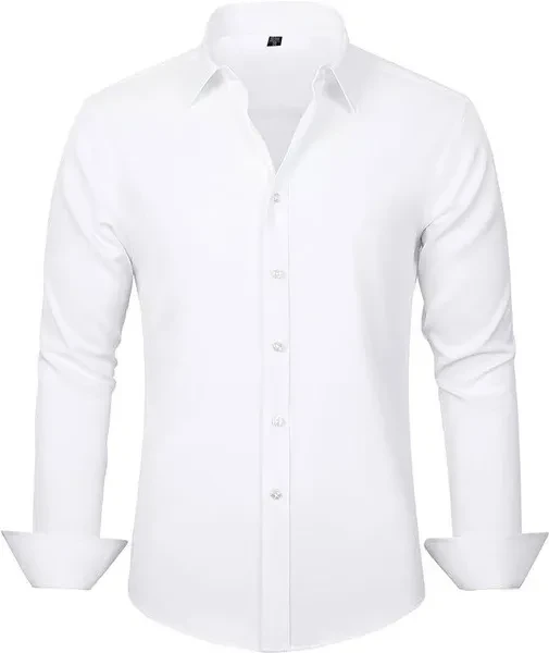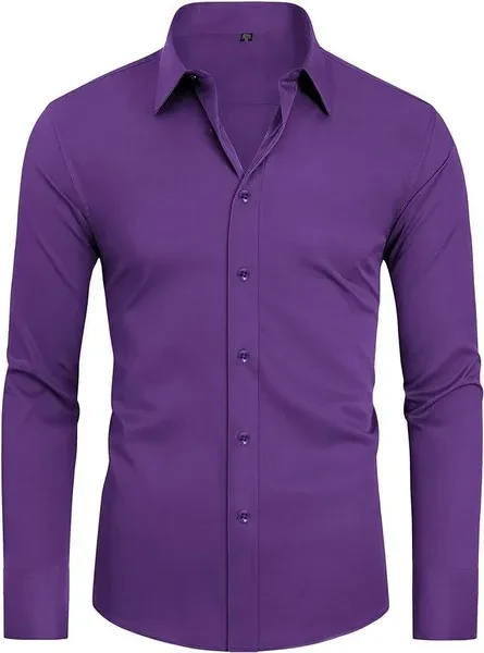 Mens Elastic Non Iron Shirts Formal Business Long Sleeves Casual Dress Shirts
