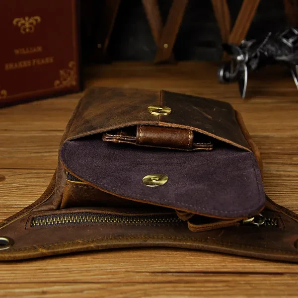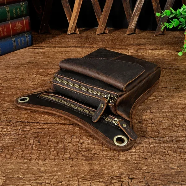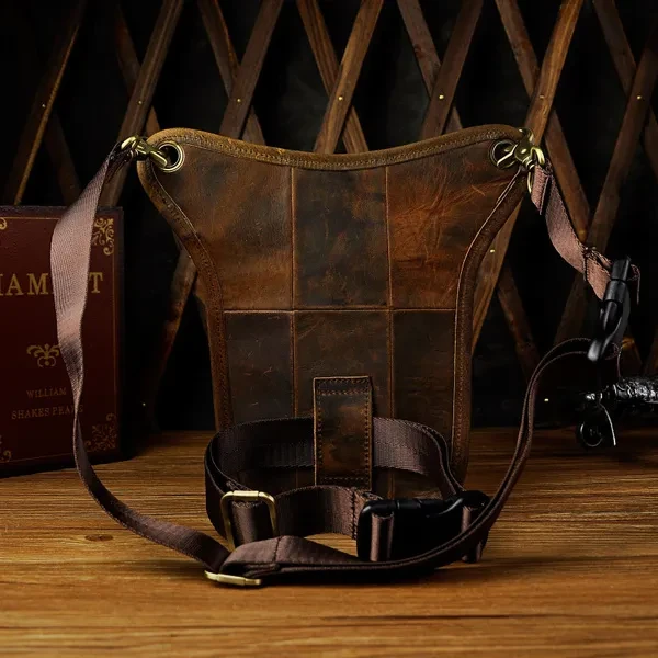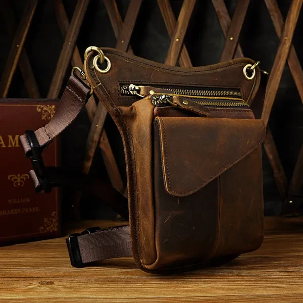 Mens Genuine Real Leather Motorcycle Cycling Waist Hip Bum Pack Utility Drop Leg Bag Cowhide
