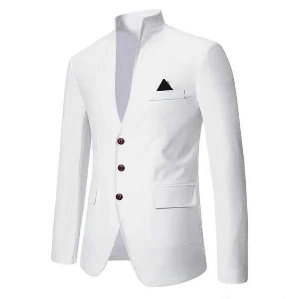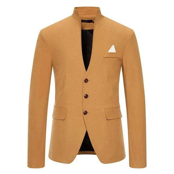 product description pattern: plain Supply category: spot Clothing pocket style: flap pocket Material function: no ironing Color: white, black,coffee, khaki Product Category: Casual Suits Content of main fabric components: 80 Size:M,L,XL,XXL,XXXL Version: slim fit Lining composition: polyester fiber (polyester) Collar type: Stand collar Fabric name: cotton blend Applicable scene: leisure Slit method: middle back slit Placket: Single row, three buttons Main fabric composition: polyester fiber (polyester) Clothes length: regular Applicable gender: Male Applicable age group: adults Suitable season: four seasons Sleeve length: long sleeve Style details: color matching Clothing hem design: straight hem Style:British Error range: 2cm Technique: Collage/Splicing Package includes: 1 * Suit (Suit Only, Others Not Included) Notes: 1. This is Asian size, which is usually smaller than US/Euro size, please check the size chart carefully before you place an order. 2. If you can't choose the correct size, please leave a message in English, about your height in CM and weight in KG, then we will help you to choose the right size. 3. The picture shown is 100% rear object photography, however, different computers display colors in different ways, the actual project color may be slightly different from the color of the real object. 4. Our size table is based on actual product,please allow 1-3cm differs due to manual measurement. 5. .If you are Satisfied with the goods, Please Give praise, if you are in doubt please feel free to contact us. 6. You are welcome to visit our store, maybe you will find other goods your are interested. I wish you a happy shopping and have a nice day !