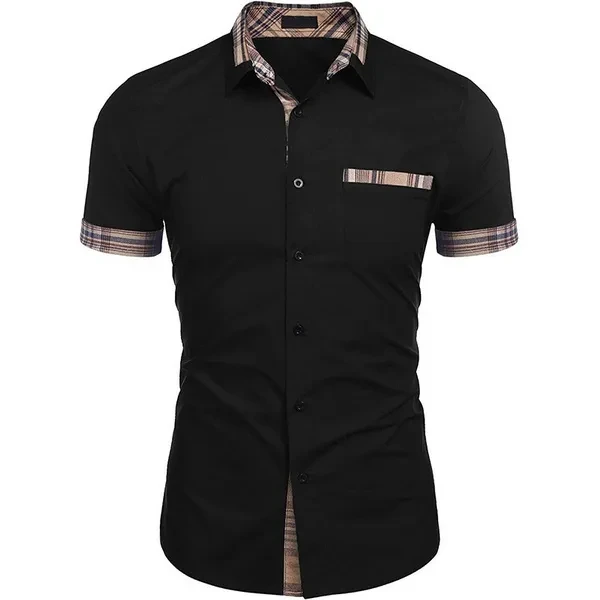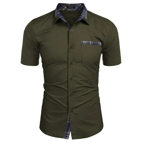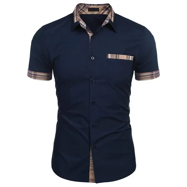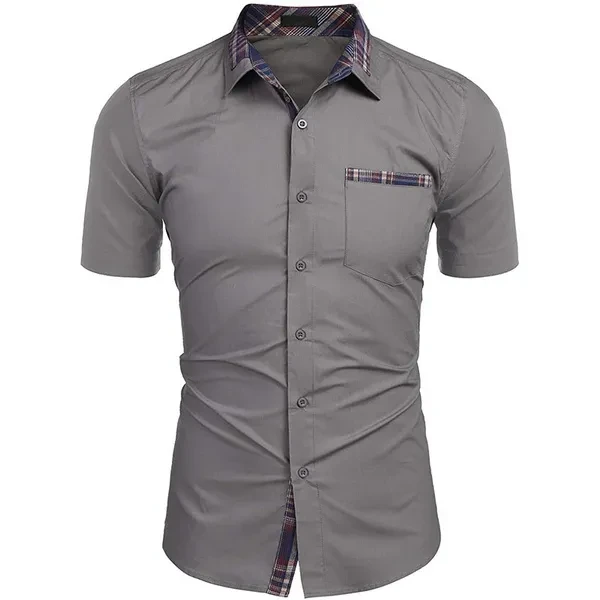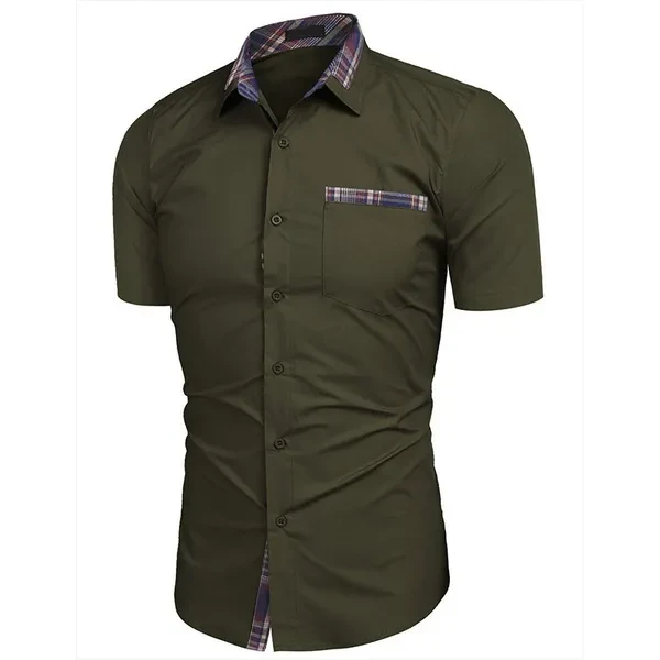 Men's Short-sleeved Summer New Casual Shirts Pure Color Business Men's Shirts Men's Fashion Button Pocket Shirts