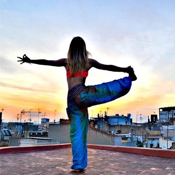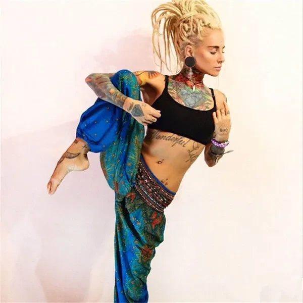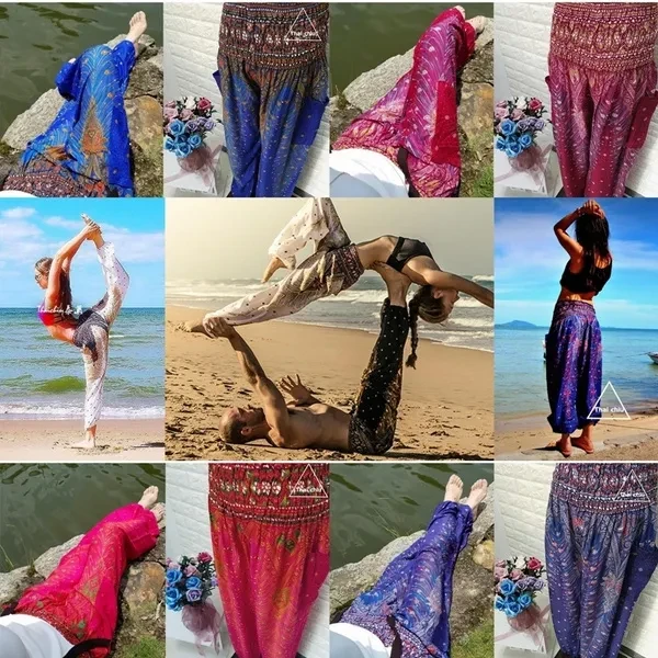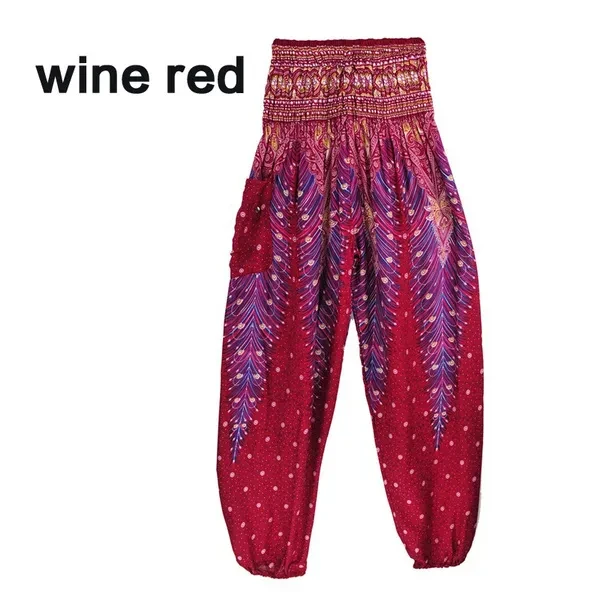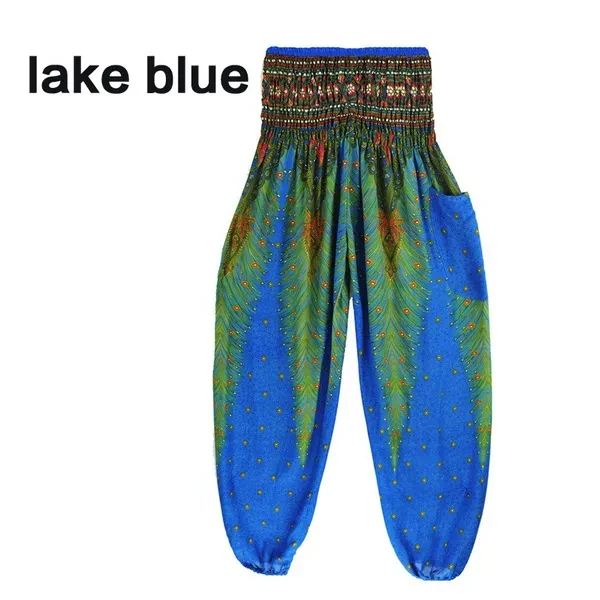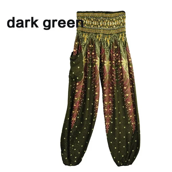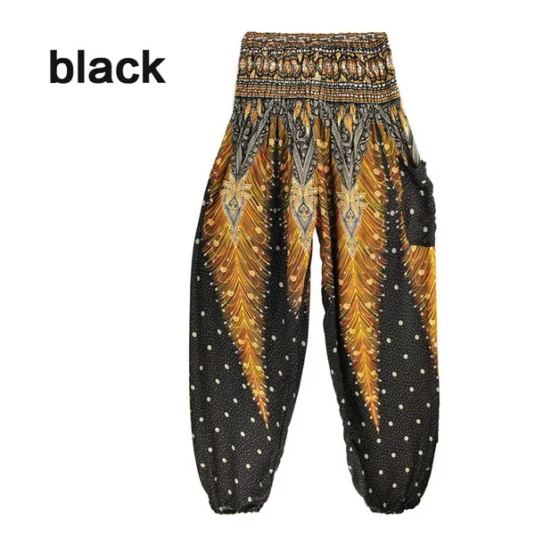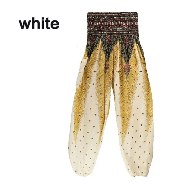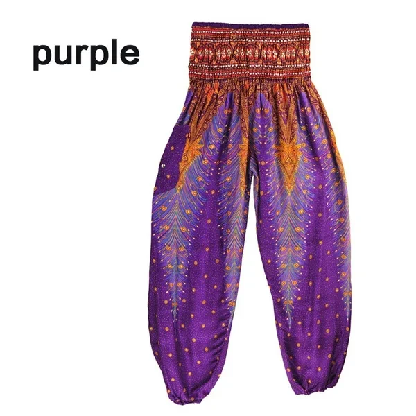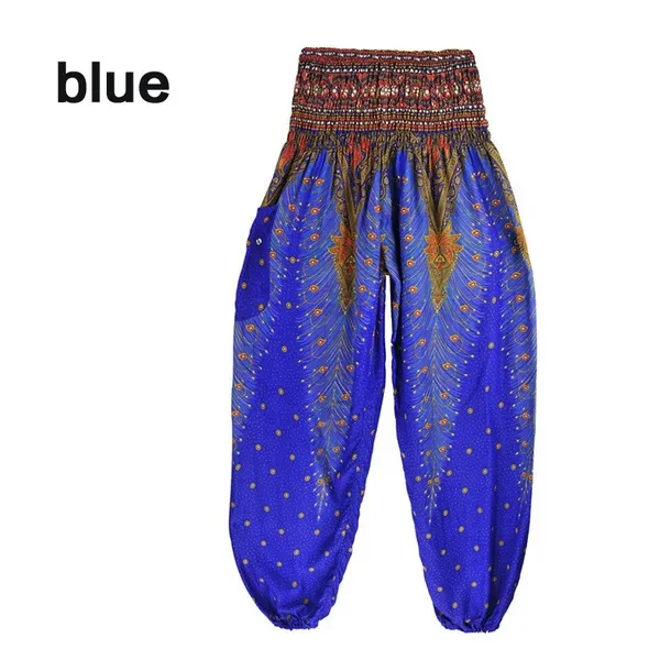 Men&Women Boho Peacock Printed Pants Hippie Sports Casual Pants High Waist Yoga Pants