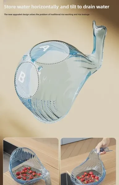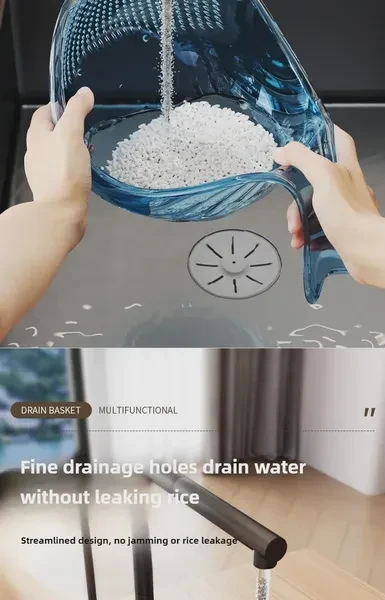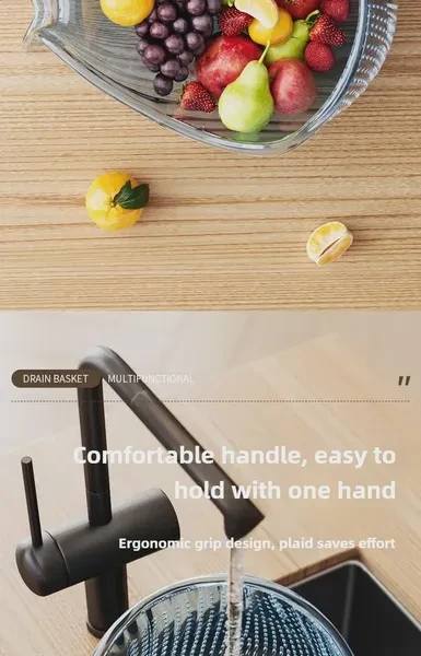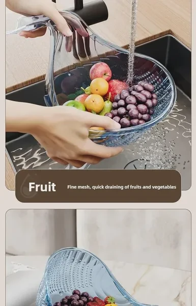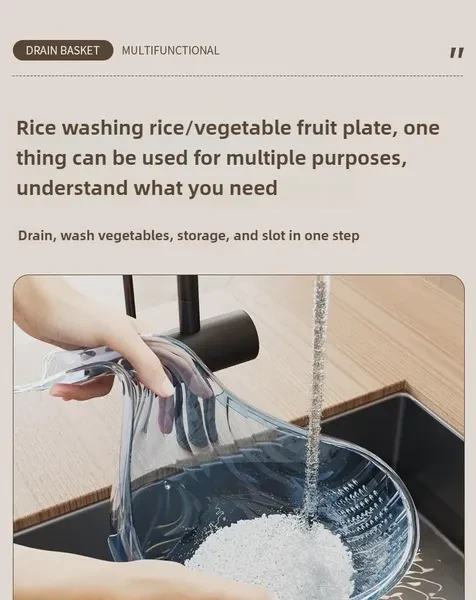 Multifunctional Drain Basket Multifunctional Fruit Basin Kitchen Household Vegetable Wash Basket Transparent Rice Cleaning Tool