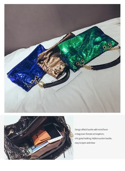 -Fashion design,100% brand new and high quality! -The sequins can be reversed for a color change. -Well hemmed, with quality, fashion and style. -Used to hold money, coin, smartphone, cosmetics, etc. -Suitable for casual, evening party, travelling, etc. Type: Women Mermaid Sequins Handbag Style: Casual, Kawaii Pattern Type: Mermaid Sequins Material: Sequins + Corduroy Color: As picture show Size : 40*22*7cm(L*H*W) Package Included: 1 * Mermaid Sequins Handbag Note: 1.There is 2-3% difference according to manual measurement.Please check the measurement chart carefully before you buy the item.(Conversion: 1 cm=0.39 inch,1 inch = 2.54 cm) 2.Please note that slight color difference should be acceptable due to the light and screen.