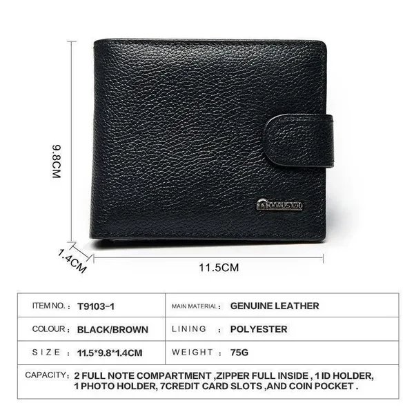 Material: Cow Leather Style:Fashion,Transverse ,Business, Sports ,Casual Color: Brown, Black Dimensions: 11.5cm x 9.8cm x 1.4cm Function:Money Bag/Dollar Bill Wallet/Card Holder Wallet/Money Clip Wallet