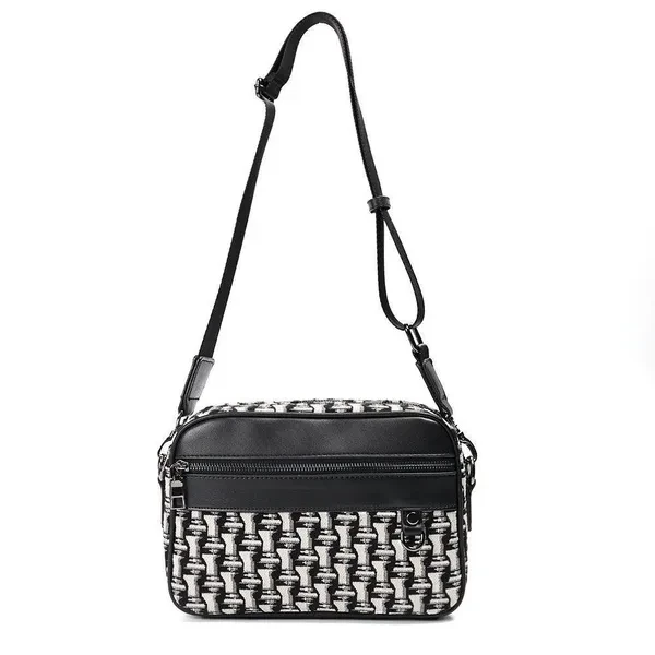 Product: Fashion shoulder bag / crossbody bag Lining material: Polyester Fabric material PU Bag shape: cross-sectional square Function profile: wear-resistant, waterproof Opening method: zipper type Internal structure of the bag: zipper concealed pocket, cell phone pocket, ID pocket Color: black, black & white Popular elements: simple, fashion Hardness: medium soft External pocket type: zipper pocket Size: 25*18*8 cm