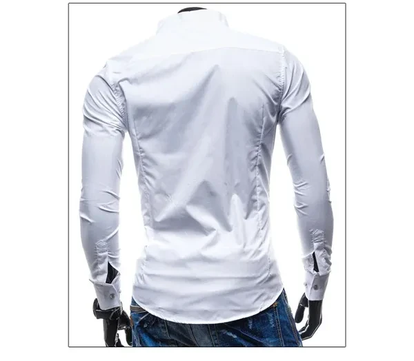 Please refer to the attached picture for the detailed measurement table. Pattern: solid Color: white, black, navy Product Category: Shirt For the crowd: youth Size: M, L, XL, 2XL Version: Slim Category: Youth Pop Collar type: stand collar Style: cardigan Thickness: General Applicable scene: leisure Main fabric composition: Cotton Applicable gender: Male Applicable age range: Adult Sleeve length: long sleeve Suitable season: spring and autumn Style: Korean Error range: 1-3cm