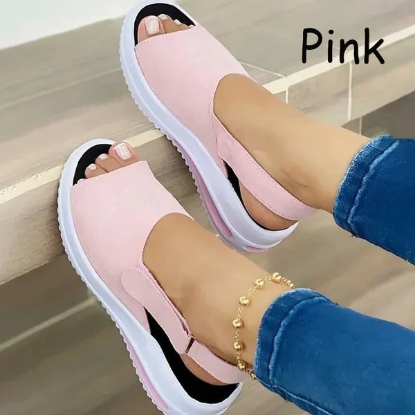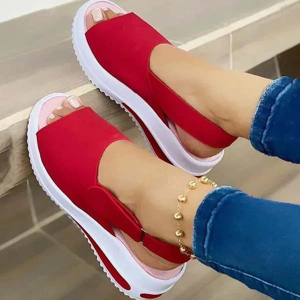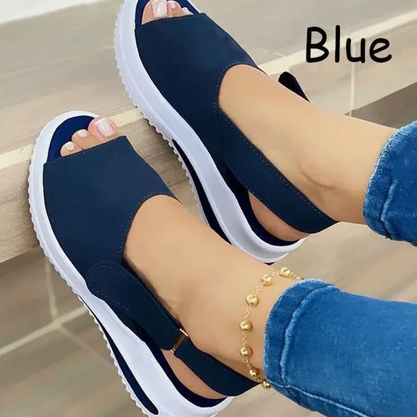 Hello! Welcome to our store! 【Thick Bottom Fish Mouth Sandals】When walking, especially on long journeys, the elasticity of the arch of the foot has a buffering effect on the rhythm of the downward gravity of the body and the resilience of the ground. 【Comfortable Support】Walk on the wild side in comfort and confidence, Our Foot bed gives an unmatched level of comfort and support. 【High Quality Material】Foot bed is molded EVA wrapped in synthetic suede Deep heel cupping and High arch support Non-slip, non-marking molded rubber out sole. 【Daily Application】Indoor and outdoor. Perfect for summer sea beach, sands, pool, lake, hiking, camping, open house, guest treat, home,street casual fashion, etc. Style: Casual. Popular elements: slope heel, waterproof platform. Toe shape: Peep toe Heel shape: Wedge heel Applicable gender: female Heel height: low heel Suitable seasons: summer, spring, autumn Color: red, black, blue, pink Size: EU 34-43//US 5-10.5 Note: 1.Pictures are only samples for reference. Due to limitations in photography and the inevitable differences in monitor settings, the colors shown in the photograph may not correspond 100% to those in the items themselves 2.Please allow 1-3 cm error because measured by hand, plz refer to the Sizing Chart before choosing.