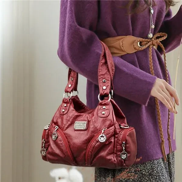 New Top-handle Purses and Handbags for Women Middle Size Soft Pu Shoulder Bags Tote Bags