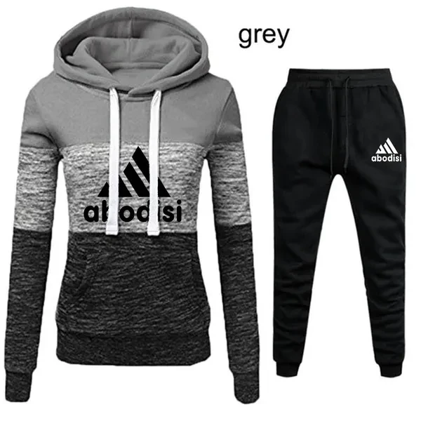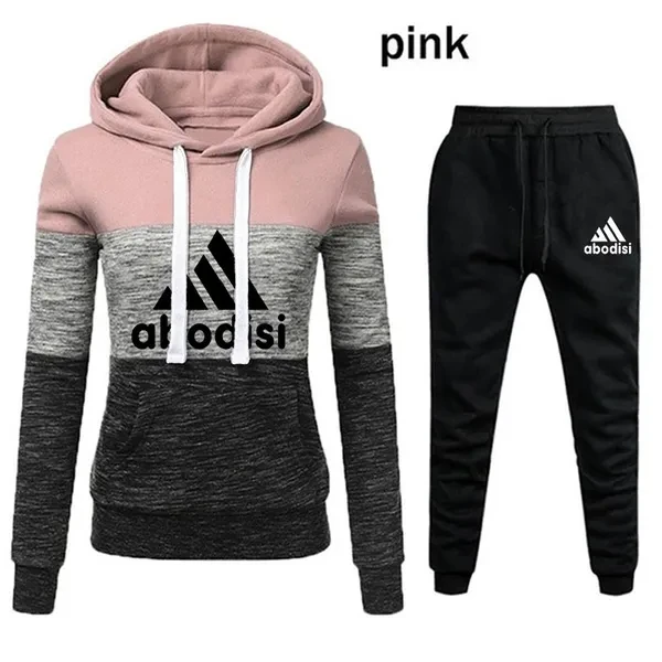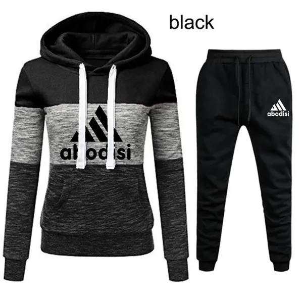 NEW Womens Printed Tracksuit Tri-color Hoodie and Pants Suits Casual Sportwear S-4XL