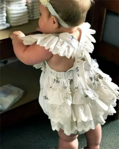 Package included: 1x Romper +1x Headband High quality and Brand new 100% Main Color: As The Picture Show Material: Cotton Blend Size Chart: (cm) Size Age Length Bust*2 70 3-9 Months 32 21 80 9-12 Months 36 22 90 12-18 Months 40 23 100 18-24 Months 44 24