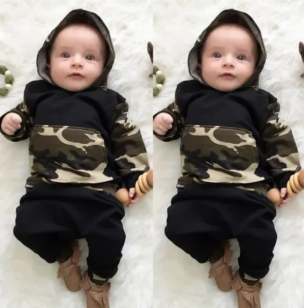 Newborn Toddler Baby Boys Camo Hooded Tops Long Pants 2Pcs Outfits Set Clothes