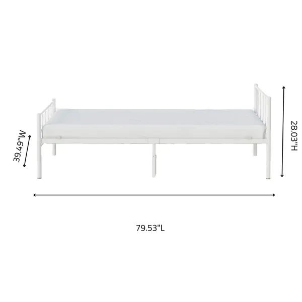 Give your toddler a bed to aspire to. With the Rack Furniture Steel Twin Sized Bed, you'll have them sleeping on their own in no time. With a sleek, simple design, the Austin Metal Twin Bed is the natural next step for your child as they transition out of the crib or toddler bed. The solid steel construction provides years of use, with six points of contact, delivering reliable support whether your child is sleeping or playing. With a non-toxic finish, this bed frame wipes clean easily, making this the ideal fit for the terrible twos. Included in this bed frame set are a headboard, footboard, and full metal slat mattress support. Integrating a box spring and bunkie board is not required and a mattress is not included. This classic twin bed assembles quickly and easily with all necessary parts and tools included. This bed measures 79.53 inches long, 39.49 inches wide, and 30.39 inches tall. Let your child sleep in style and makeup bedtime exciting with the Rack Furniture Steel Twin Sized Bed