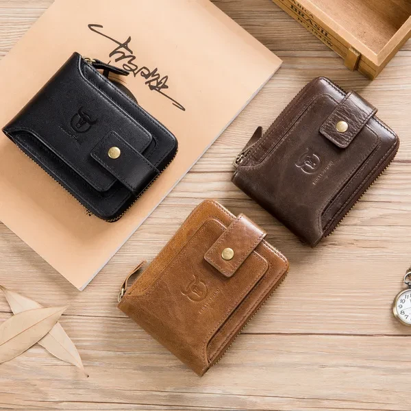 Men's Leather Wallet: Genuine leather,with breathable polyester lining. Size and Color : 4.72(L)*3.54(W)*1.18(H)(in). Weight: 015kg. Black, brown and coffee, 3 different colors for your needs. (Please allow 0.3"-0.9" in size error due to manual measurement.) Safety, Privacy and Security : Our wallets are equipped with advanced RFID SECURE Technology, a unique metal composite, protect the valuable information stored on RFID chips from unauthorized scans. Men Wallet with Zipper : Large Capacity: 12 card slots + 2 cash compartments + 1 driver's license / ID/ photo window + 1 zip coin pocket. It’s easy to carry all your important cards and meets all your daily needs. !!!Please pay attention that this wallet is not a slim / Minimalist style, if you are looking for something slim / thin, this one might not be the right one for you. The wallet is large capacity, but not bulky. It fits in your back/front pocket. Features : This men wallet is both fashionable and functional. Features the special design and the nice structure. Hope this wallet could be your loyal friend keeping company with you for every adventure both near and far.