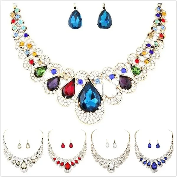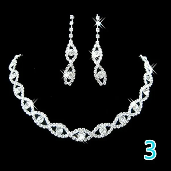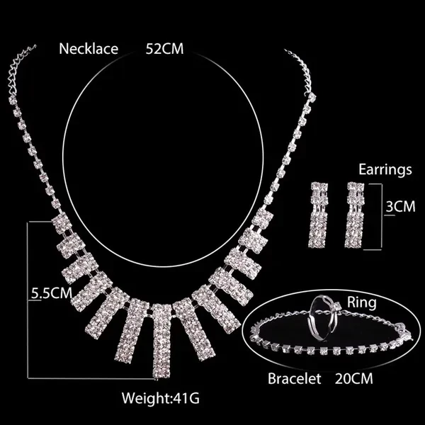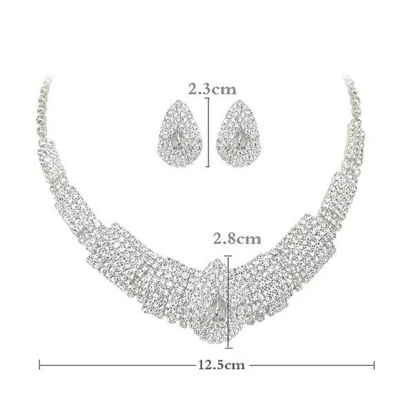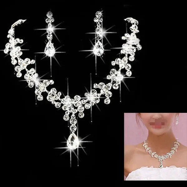 Rhinestone Drop Necklace Earring Plated Jewelry Set for Wedding Bridal