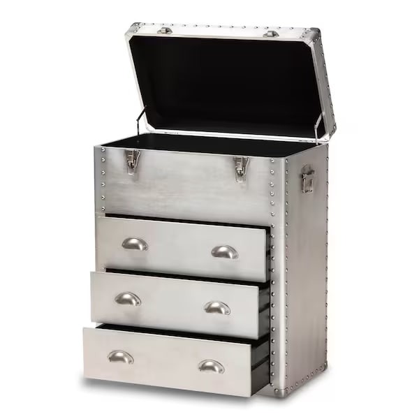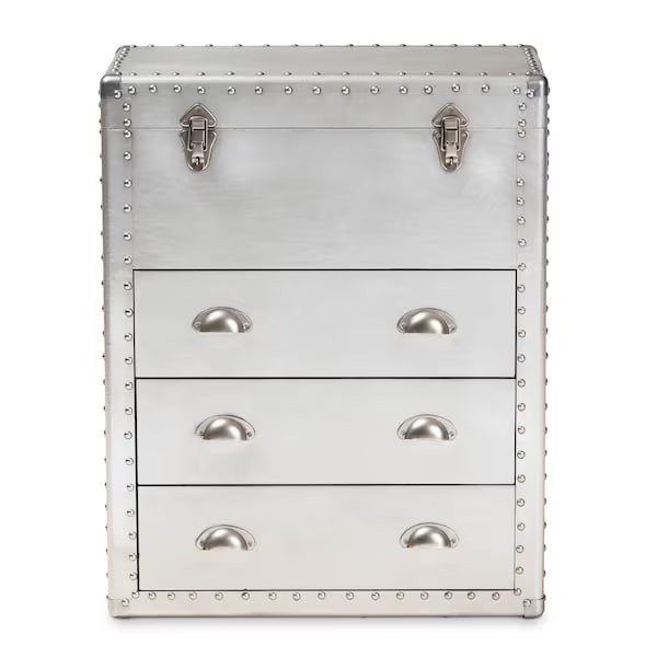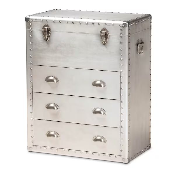 Serge Silver Metal 3-Drawer Accent Storage Chest