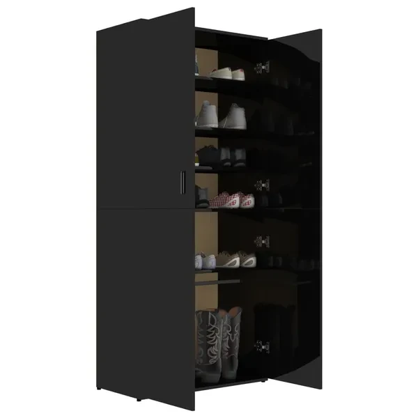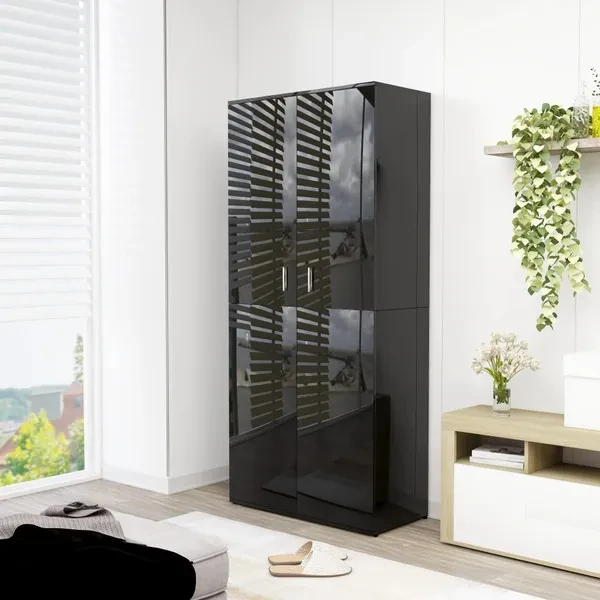 Shoe Cabinet High Gloss Black 80x39x178 cm Chipboard Schuhschrank Schoenenkast Meuble à chaussures
