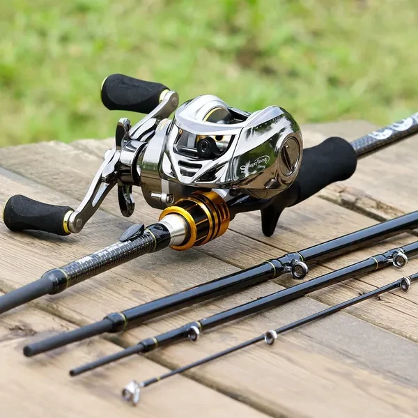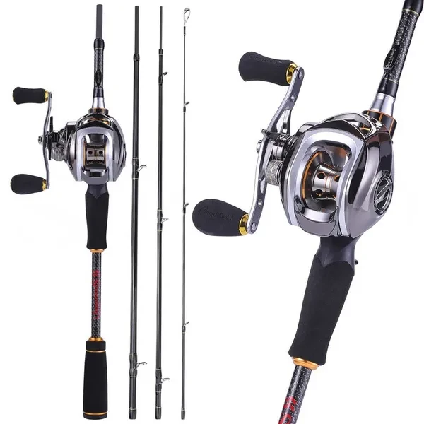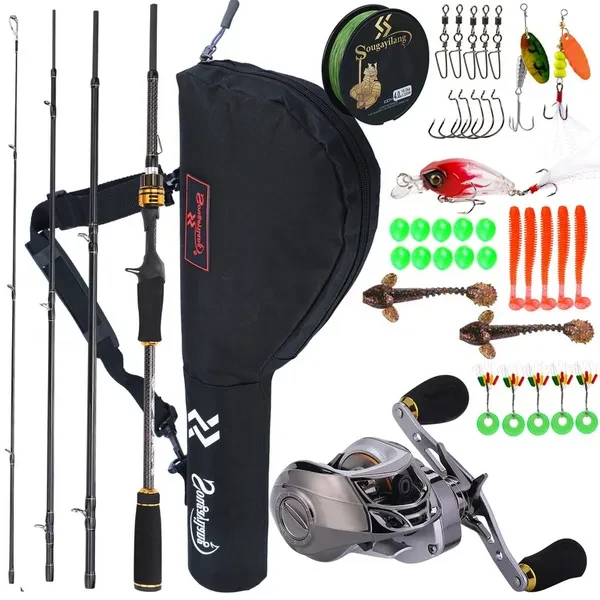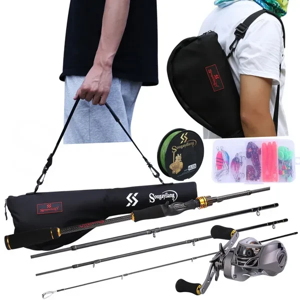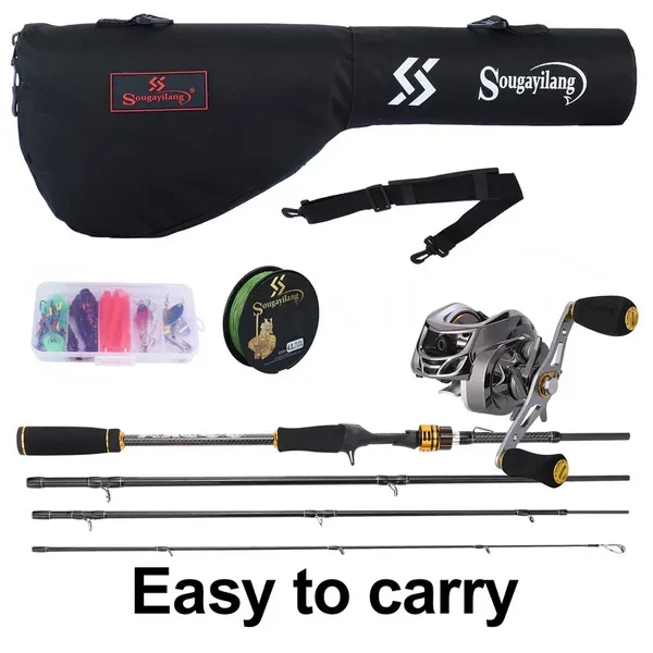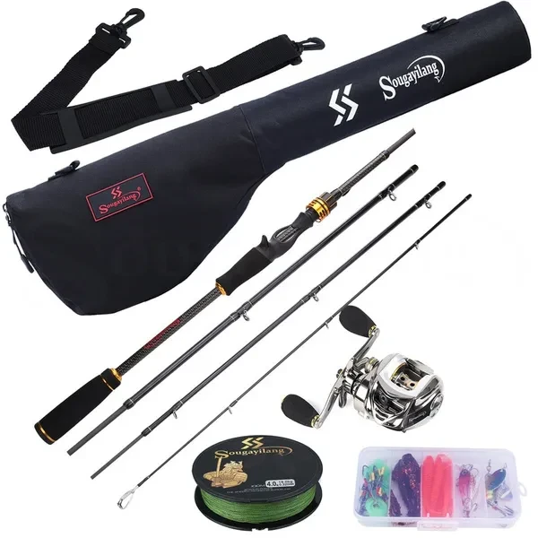 Sougayilang Fishing Rod and Reel and Fishing line lure Bag Combo, 4 Section Fishing Rod and 11+1BB Baitcasting Reel