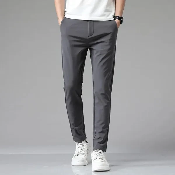 Summer Thin Business Stretch Slim Fit Elastic Waist Men's Casual Pants Jogger Korean Classic Blue Black Gray Brand Trousers Male