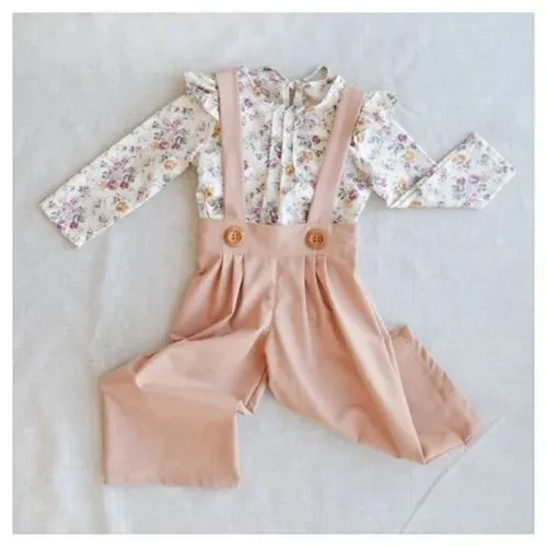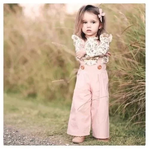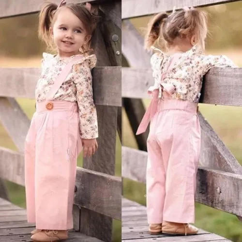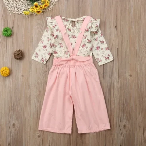 Toddler Kids Baby Girl Floral Ruffle Tops T-Shirt Bib Strap Pants Outfit Clothes