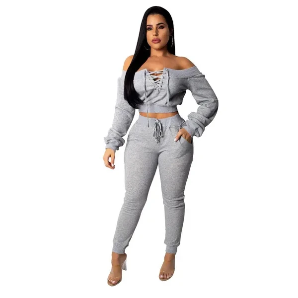 Pant Length(cm): Full Length Pattern Type: Solid Clothing Length: Short Pant Closure Type: Elastic Waist Sleeve Style: Regular Collar: Slash neck Decoration: NONE Closure Type: Pullover Style: Streetwear Sleeve Length(cm): Full Material: Cotton,Spandex Gender: WOMEN