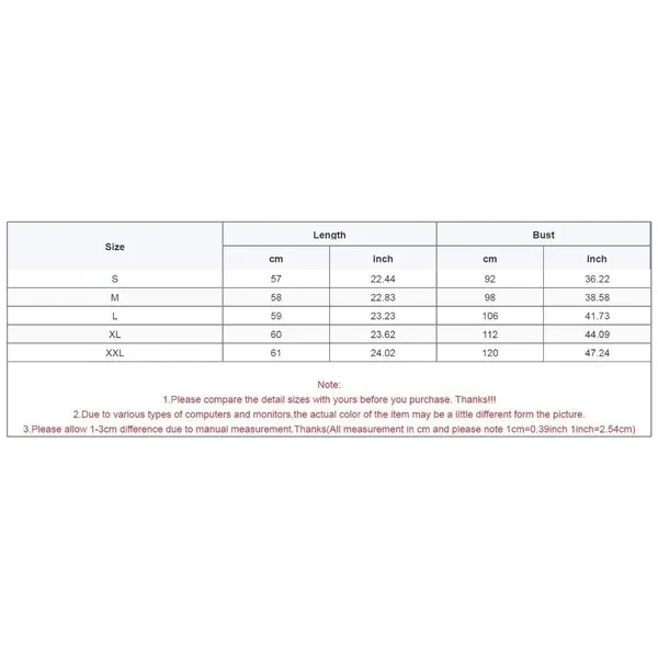 Size:XXL Length:61cm(24.02inch) Bust:120cm(47.24inch)