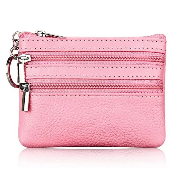 Women Men Leather Coin Purse Card Wallet Clutch Double Zipper Small Change Bag