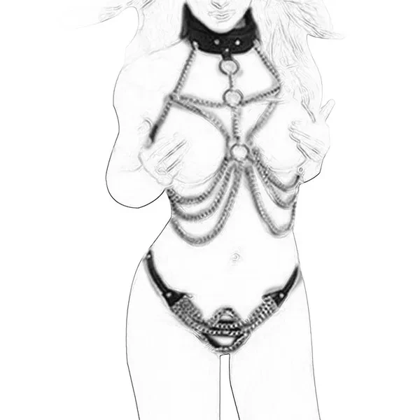Set Include: 1pc top, 1pc G-string, 1 pair pasties Condition: New without tag Material: PU Leather, Chain Color: (As pictures shown) Features: Womans body harness, snapped collar connected to chains bikini top. One size, fits max neck circumference 40cm, chest 74-94cm. The thong has adjustable straps with buckles, fits waist 74-94cm. Friendly Tips: The size is measured by hands, please allow minor error of measurement. Photo color might be a little different from the actual product due to color display of different monitors.