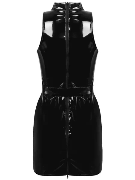 Set Include: 1x Dress, 1x Belt Condition: New without tag Material: Patent Leather Features: Women High Neck Sleeveless Solid Color Wet Look Patent Leather Zipper Dress. Featuring high neck, sleeveless, solid color, zipper closure on the back. Made of good stretchy patent leather, soft and comfortable to wear, shiny, make you eye-catching. Best for party, dating, pub, clubwear, stage performance or daily wear.