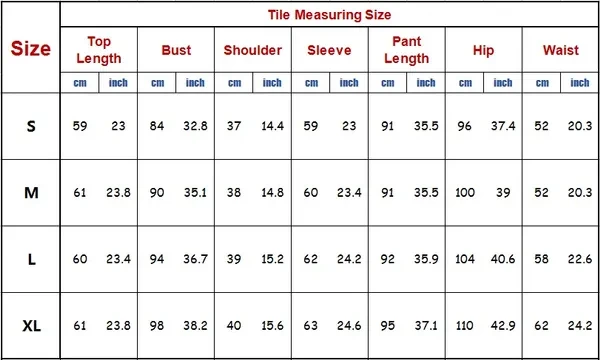 The Size Chart is in picture. This is Asian size,so it may be smaller than European size,pls choose the bigger one!!! Note: Please choose a size refer to the Size Chart We offer. Size: S M L XL Color: As pictures Material: Polyester fiber Season: Autumn / Summer Package included: 1 * Sweatshirt 1 * Pants