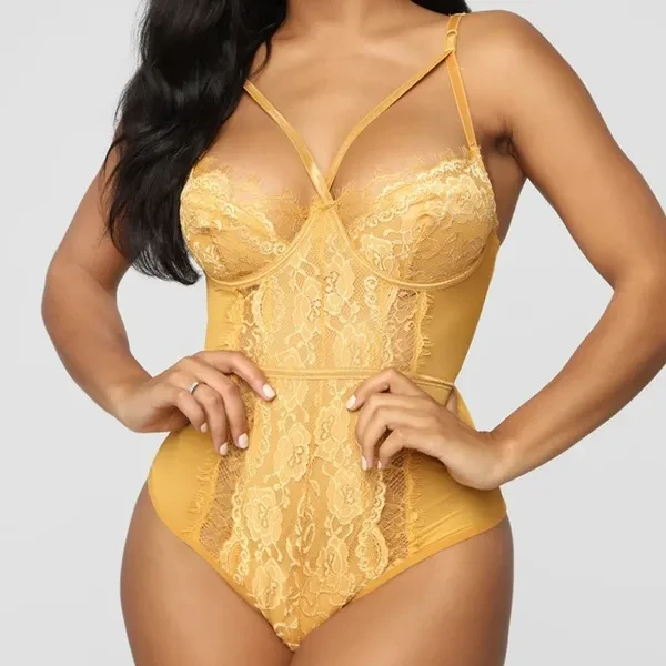 Women's Fashion Cross Bodysuit Lace Jumpsuit Sleeveless Halter Lace Pajamas Lingerie Sleepwear Rompers S-5X