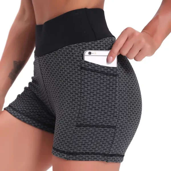 Description Material: 90%Polyester+10%Spandex Color: As The Pictures Quantity: 1 PC Women Yoga Pant Package Include: 1x Women Yoga pocket shorts Pant Size Chart Shorts Size Waist (cm) Hip (cm) Length (cm) S 60 84 31 M 65 88 32 L 70 94 33 XL 76 100 34 Please allow 1-2cm differs due to manual measurement! Attention Tips: 1.Size may be 2cm/1 inch inaccuracy due to hand measure. Color may be little different due to monitor. 2.Please put the clothes into the laundry bag during washing.