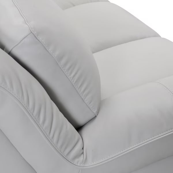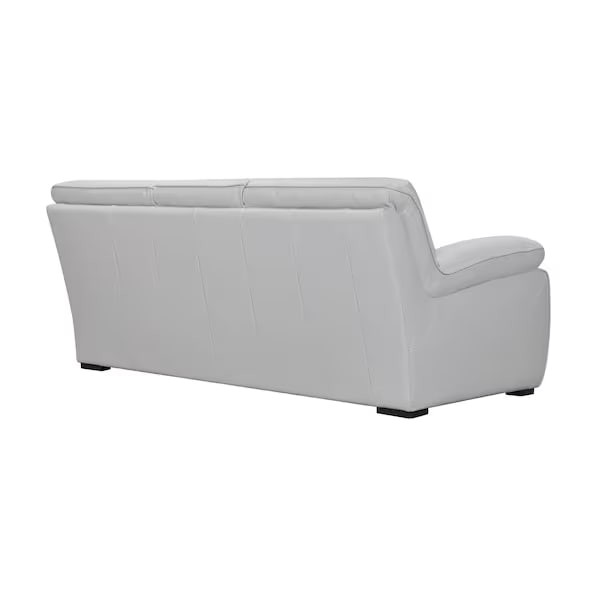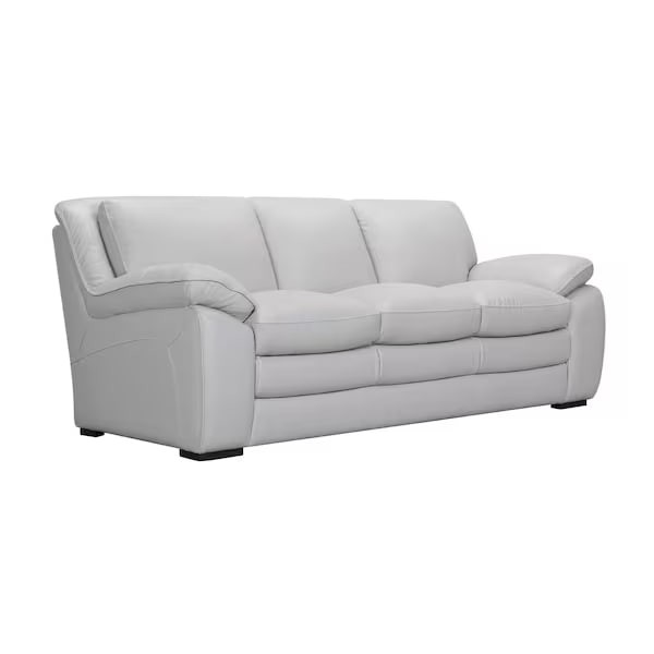 Zanna Contemporary Sofa in Genuine Dove Gray Leather with Brown Wood Legs
