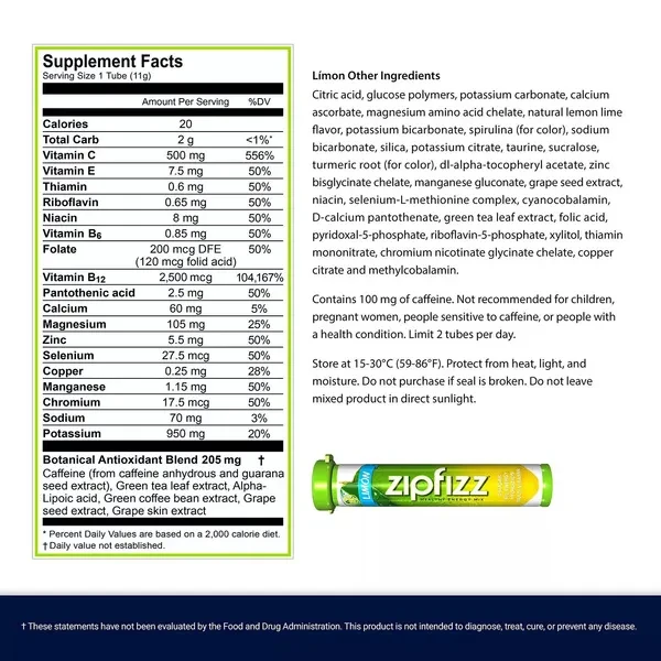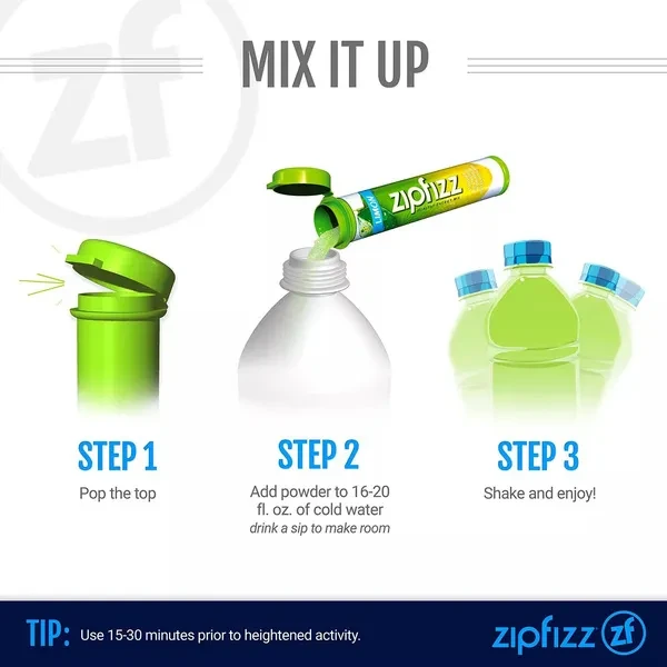 Experience the refreshing & tangy blend of lime and lemon with our Zesty Limon flavor. Simply add Zipfizz powder to 16-20 ounces of water or any other non-carbonated beverage, shake, and enjoy! It's a delightful, bubbly beverage that's perfect for any time of the day.